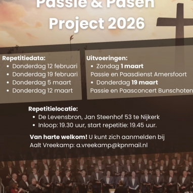 Passie & Pasen Project 2026 In het voorjaar van 2026 wordt het Passie & Pasen Project uitgevoerd van Het Christelijk Streekmannenkoor NW Veluwe Lees verder... |
