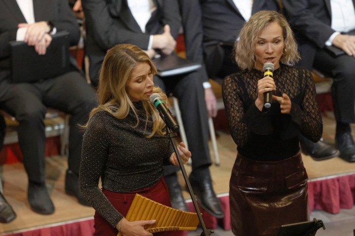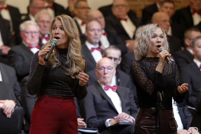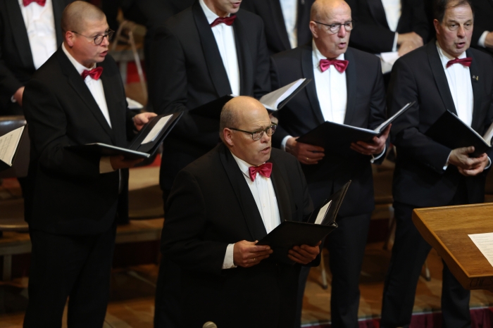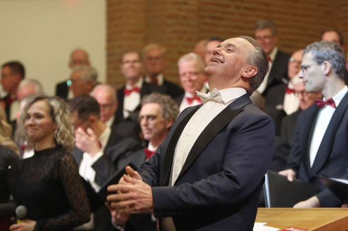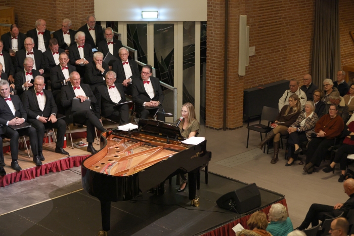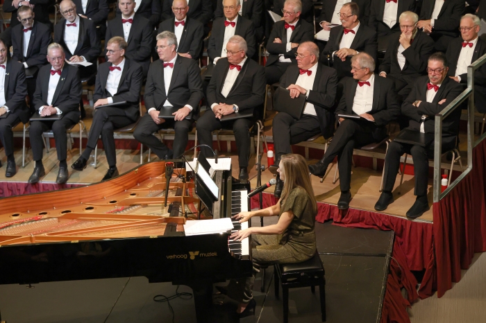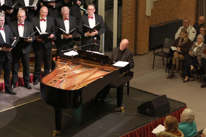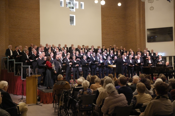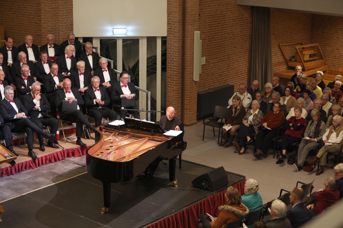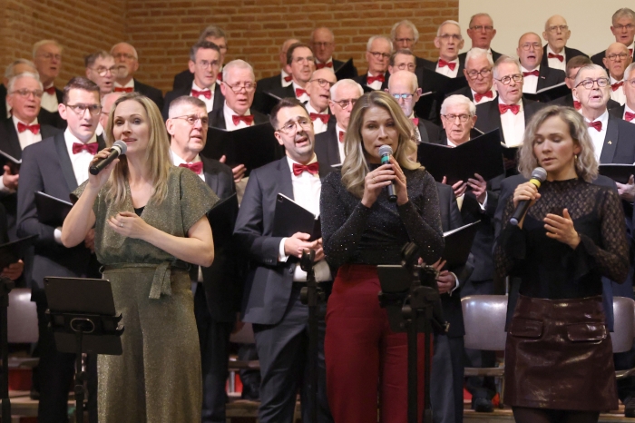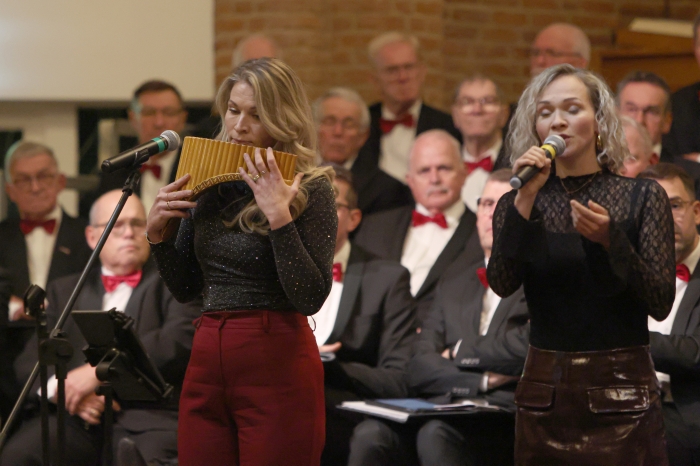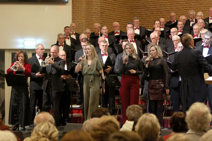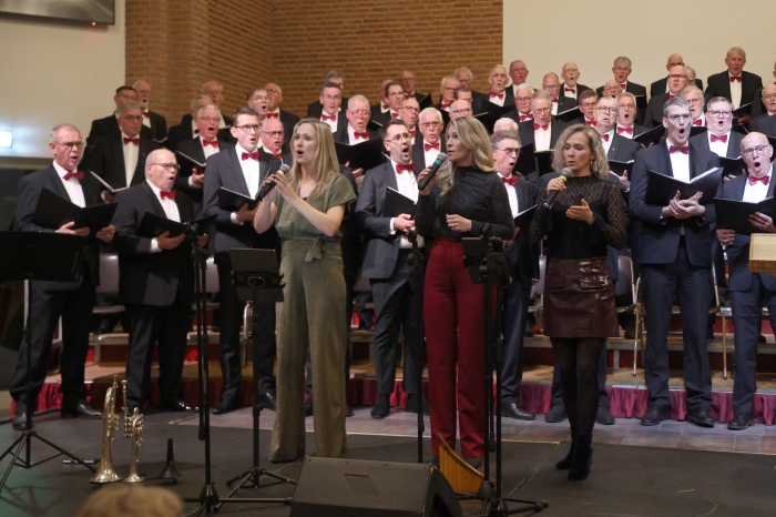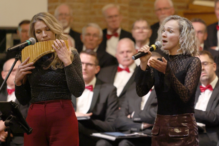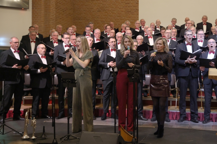 Naast de sfeervolle kerstliederen die het mannenkoor ten gehore bracht, met medewerking van koorsolisten Geert Westerhof en Peter Estié, was er een indrukwekkend optreden van Vocalgroup Filiae. Ook het ensemble van het koor wist het publiek te raken met prachtige liederen als Living Humble en We’ve Got Good News to Tell.