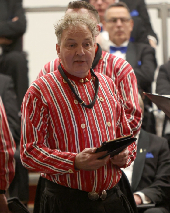 Jan Vreekamp kreeg een speldje opgespeld omdat hij 40 jaar lid van het koor is.